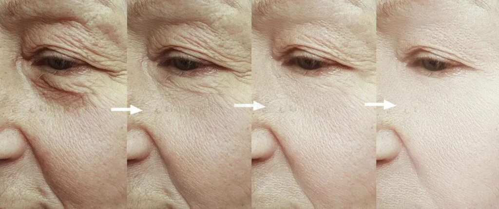 Elimina instantáneamente las arrugas de expresión, las patas de gallo y los contornos caídos del rostro.