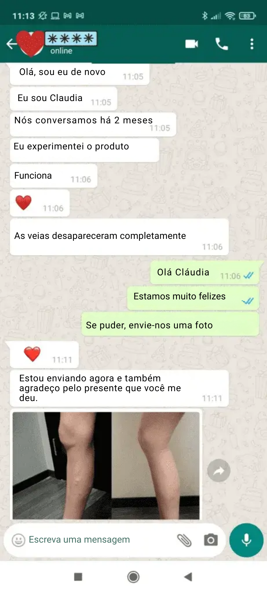 "Nunca esquecerei aquela noite... Estava sentada na beira da cama, em lágrimas, depois de mais um verão passado a me esconder. Sentia como se o meu corpo estivesse me traindo. Então descobri esta solução e, em apenas 14 dias... tudo mudou. Os capilares quase desapareceram e as varizes reduziram, como não acontecia há anos."